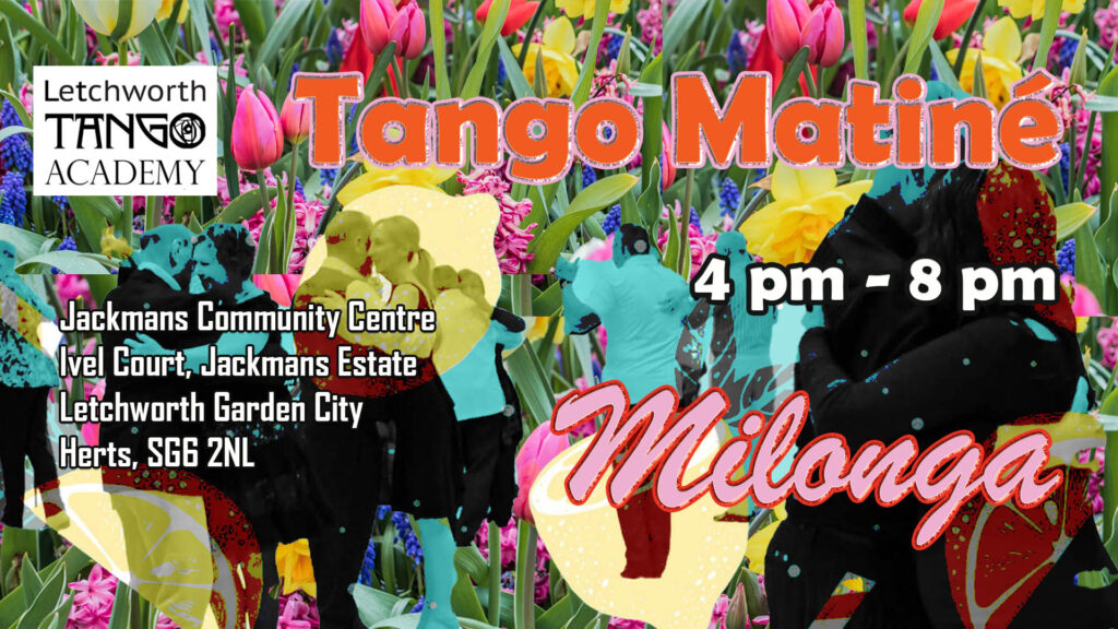 Tango Matiné with DJ Ale Krugliak in Letchworth on Sunday the 16th of April 2023, from 4pm until 8pm. No need to book, £12 at the door. Lovely dancers and a variety of yummy sandwiches and cakes! Tea, coffee and cakes provided. Soft drinks and alcoholic drinks available from the bar in the venue. Free parking at the venue`s car park